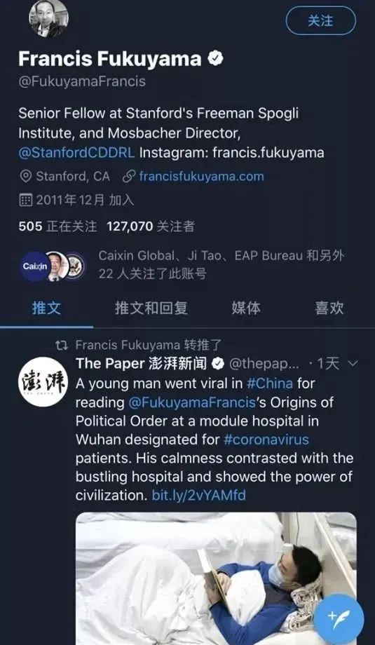 这张照片被记者偷拍,从社交网站流传到境外后,美国学者弗朗西斯科·福山,马上认出:付先生读的书,正是他著的《政治秩序的起源:从前人类时代到法国大革命》。